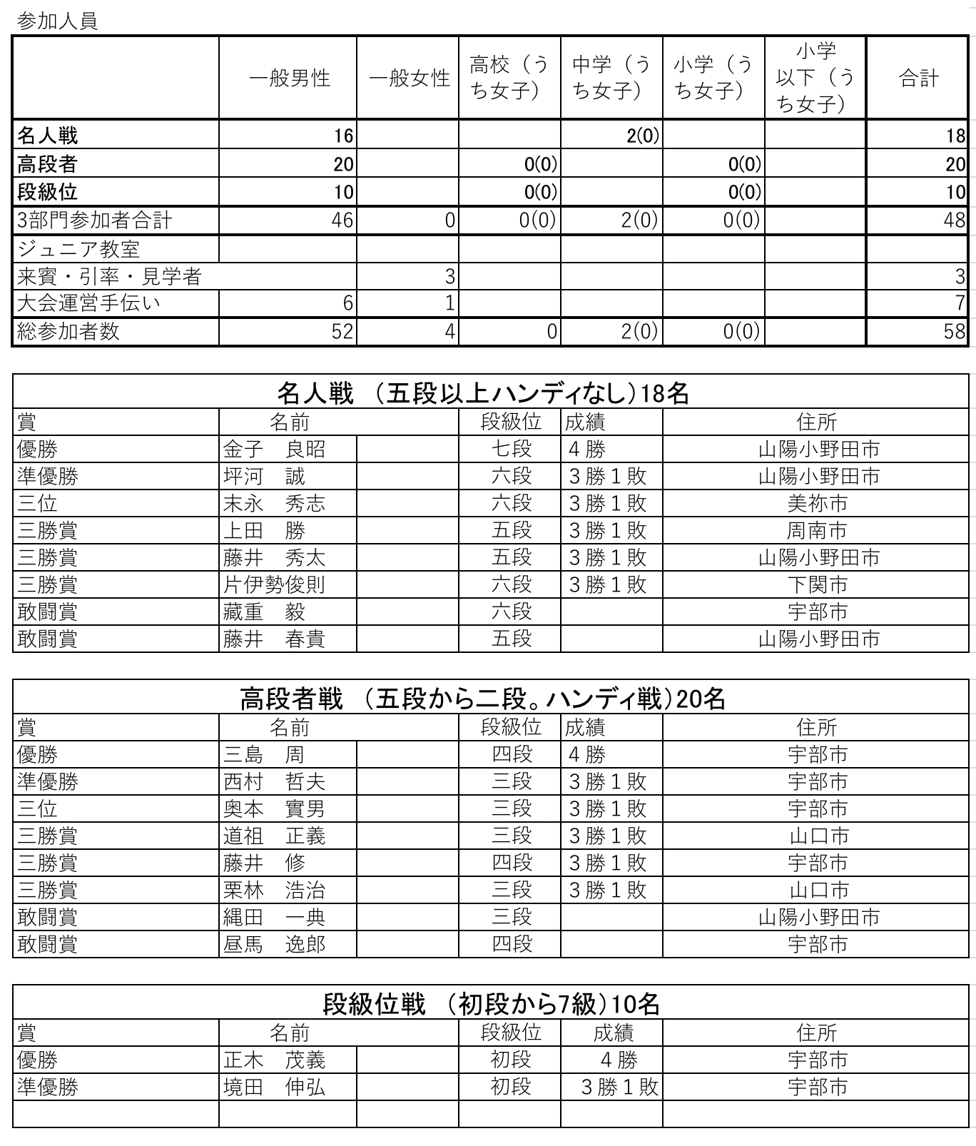 第14回日本棋院宇部支部長杯囲碁大会の成績報告